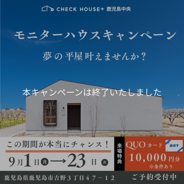 イベント情報 チェックハウスプラス 鹿児島中央 お知らせ CATEGORY カテゴリー イベント情報 チェックハウスプラス 鹿児島中央 お知らせ 2025. 10.28 モデルハウス見学体感会 2025. 09.23 【終了しました】モデルハウスオープン1周年感謝祭 2025. 09.01 【終了しました】モデルハウス見学会開催中 2025. 08.11 【終了しました】モニターハウスキャンペーン開催中 2025. 08.09 【終了しました】モデルハウス1周年キャンペーン開催 2025. 07.05 【終了しました】モデルハウス見学会フェア 2025. 06.09 【終了しました】モデルハウスご来場キャンペーン 2025. 03.04 【終了しました】3/8㈯~30㈰モデルハウス完成見学会開催!【OPEN HOUSE】 2025. 02.01 【終了しました】建築家とつくる 家づくり無料相談会 2024. 12.25 【終了しました】2025年 新春おうちづくりフェス! 2024. 12.17 【終了しました】総額1億円分キャンペーン! 2024. 12.08 【終了しました】期間延長!!モニターハウスキャンペーン