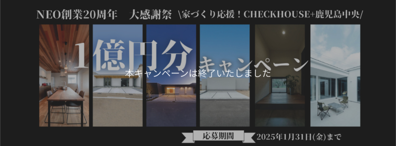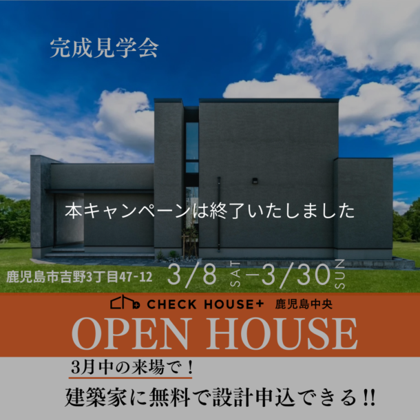 イベント情報 チェックハウスプラス 鹿児島中央 お知らせ CATEGORY カテゴリー イベント情報 チェックハウスプラス 鹿児島中央 お知らせ 2025. 10.28 【開催中】モデルハウス見学体感会 2025. 09.23 【終了しました】モデルハウスオープン1周年感謝祭 2025. 09.01 【終了しました】モデルハウス見学会開催中 2025. 08.11 【終了しました】モニターハウスキャンペーン開催中 2025. 08.09 【終了しました】モデルハウス1周年キャンペーン開催 2025. 07.05 【終了しました】モデルハウス見学会フェア 2025. 06.09 【終了しました】モデルハウスご来場キャンペーン 2025. 03.04 【終了しました】3/8㈯~30㈰モデルハウス完成見学会開催!【OPEN HOUSE】 2025. 02.01 【終了しました】建築家とつくる 家づくり無料相談会 2024. 12.25 【終了しました】2025年 新春おうちづくりフェス! 2024. 12.17 【終了しました】総額1億円分キャンペーン! 2024. 12.08 【終了しました】期間延長!!モニターハウスキャンペーン
